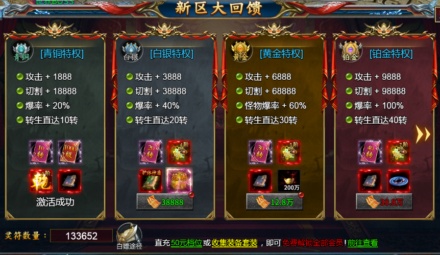 3、充值达标后,将按照创角天数一次性补领全部天数未领取的充值卡,什么时候达标都不会有奖励损失哦~