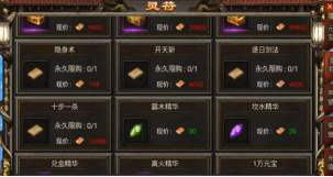 隐身术、开天斩、逐日剑法、十步一杀这 4 本技能,都可以从商城里购买到。