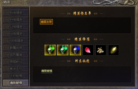 2、挑战幽冥主宰,获取魂骨装备、魂骨碎片和精金石