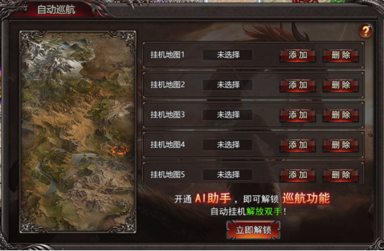 1、选择设置挂机地图,无地图时不能挂机,点击删除可以清除地图。